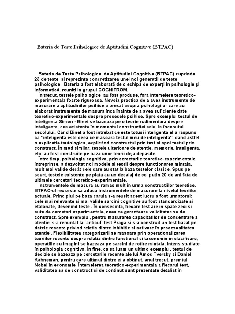 Referat Bateria De Teste Psihologice De Aptitudini Cognitive Btpac Psihologie 40170