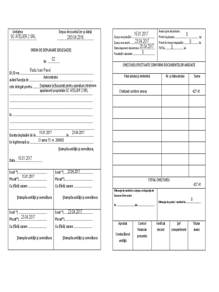 Care sunt documentele prin care faci dovada calitatii de coasigurat in 2017. Pentru celelalte entitati cum ar fi persoanele juridice fara scop lucrativ nu se cuprind in baza lunara a contributiilor sociale obligatorii sumele primite de angajati pentru acoperirea cheltuielilor de transport si cazare precum si indemnizatia primita pe perioada delegarii si detasarii in alta localitate in tara si in strainatate in. Documente justificative raspuns oferit de irina dumitrescu consultant fiscal expert contabil valabil la 21 feb 2017. Cazare in delegatie fara documente justificative.