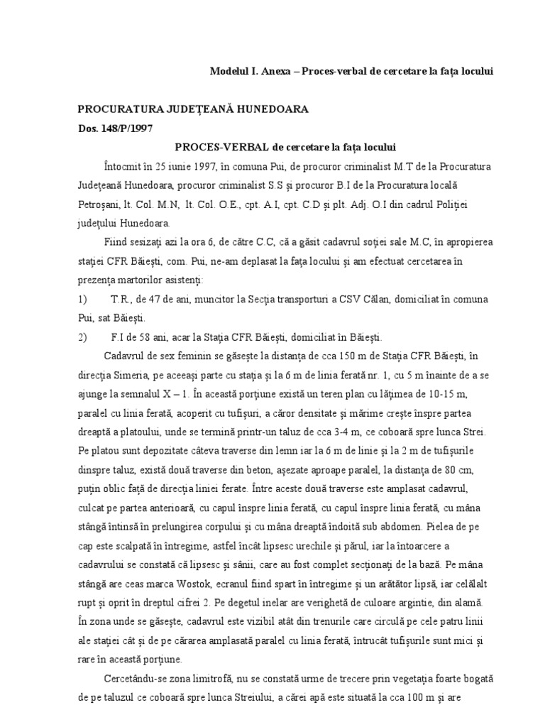 Proces Verbal De Cercetare La Fata Locului