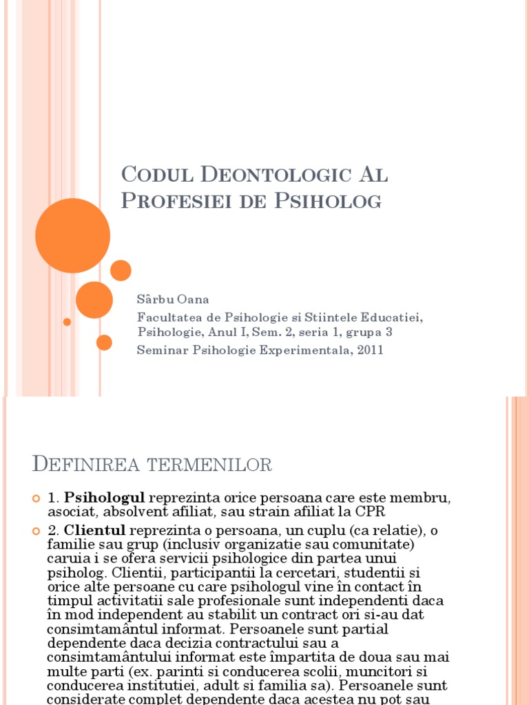 Curs Codul Deontologic Al Profesiei De Psiholog Psihologie 8301