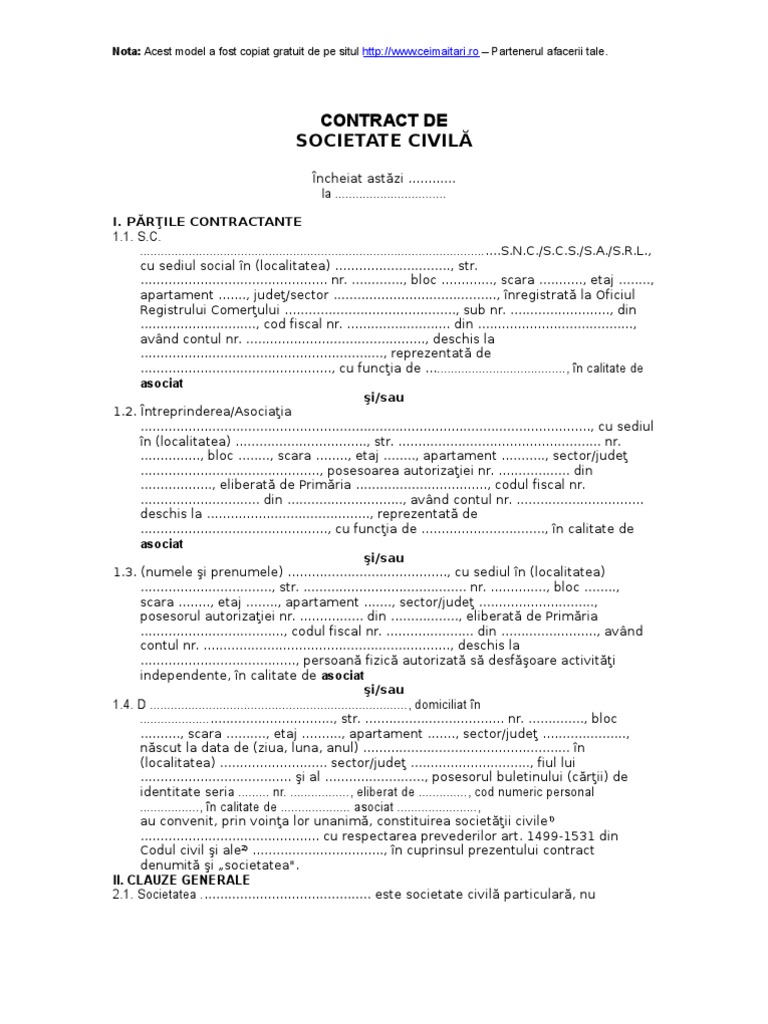 Fillable Online Rise Contract De Societate Civil Nr 1 30 Iulie Rise Moldova Rise Fax Email Print Pdffiller