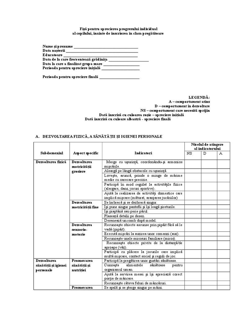 Fisa De Apreciere A Progresului Individual Grupa Mini 1000000000000000