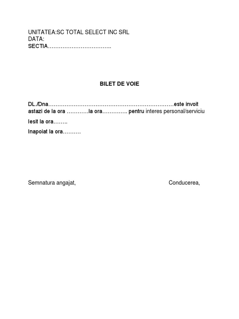 Invoire Bilet De Voie Model Word