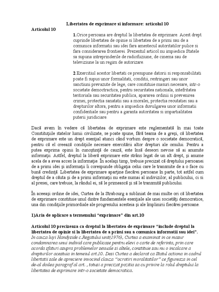 Libertatea De Exprimare Si Informare Articolul 10 Cedo