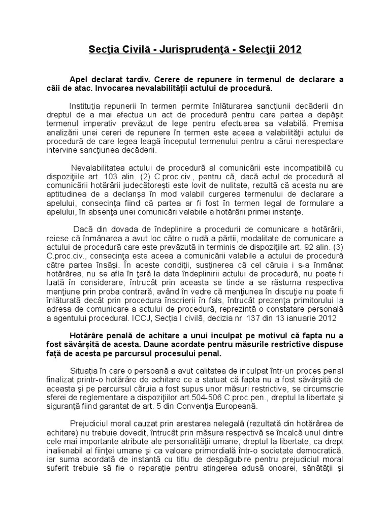 Ljurisprudenţă Iccj 2012 S Civilă Doc