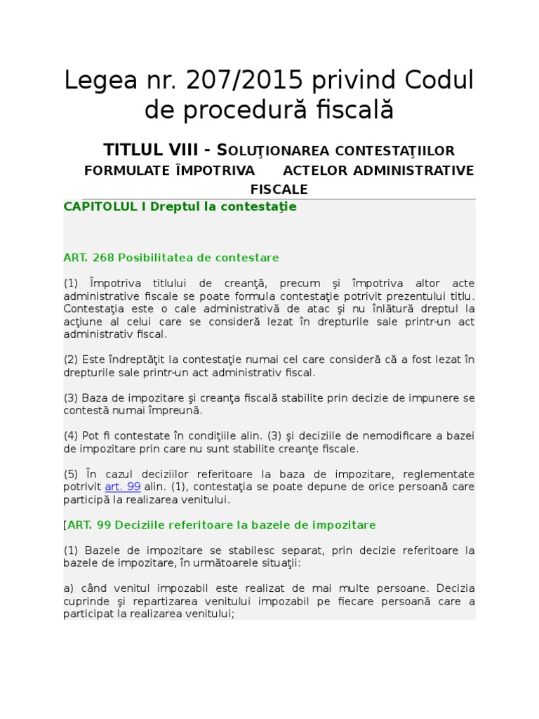 Model De Contestatie In Temeiul Codului De Procedura Fiscala