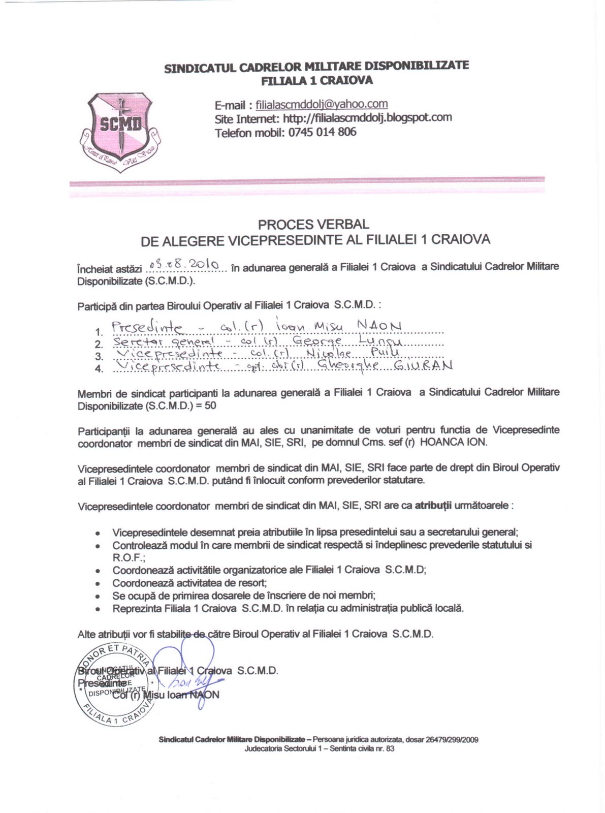 Craiova Sindicatul Cadrelor Militare Disponibilizate August 2010