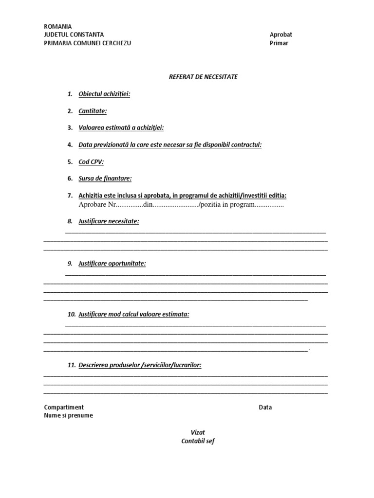Model referat necesitate primarie. Nr 2438 02 02 2017 primäria municipiului medgidia 905600 str decebal nr 35 tel 0241 820800 fax 0241 810619 e mail. Www emedgidiaf0 referat de necesitate. Aprobare noul formular de referat de necesitate ce va înlocui actualul formular nr. Modificarea se impune în vederea asigurärii unei mai bune monitorizäri a implementärii.