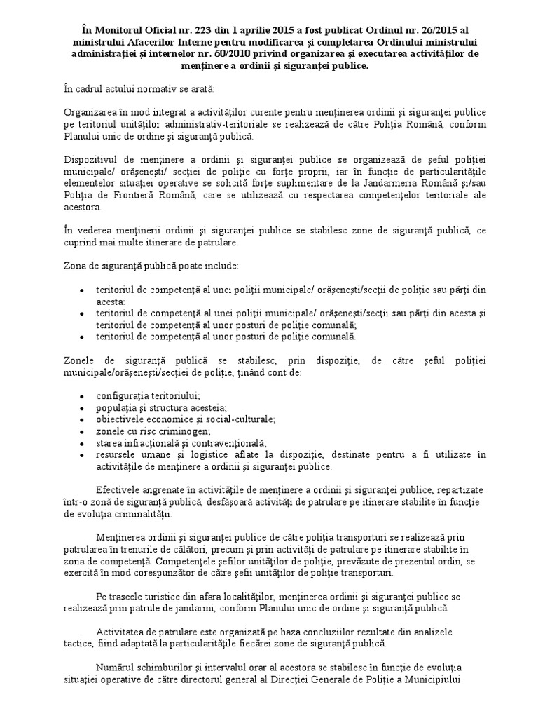 Omai Nr 26 Din 27 Martie 2015 Pentru Modificarea Omai Nr 60 2010 Bibliotecă Legislativă Politisti Ro