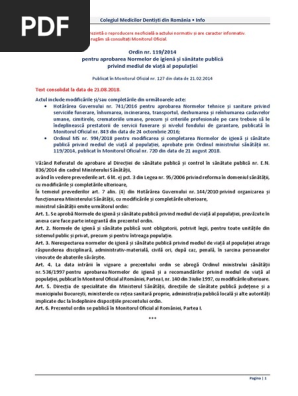Ordin Nr 119 Privind Aprobarea Normelor De Igiena Si Sanatate Publica Privind Mediul De Viata Al Populatiei
