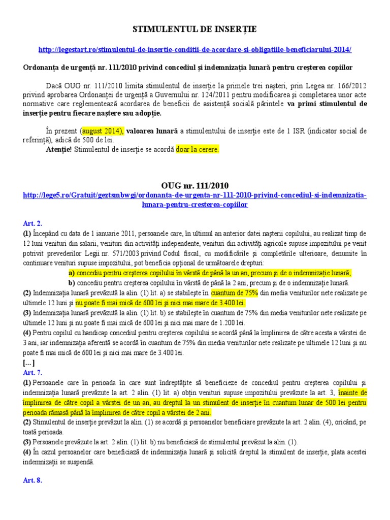 Oug Nr 111 2010 Privind Concediul Si Indemnizatia Lunara Pentru Cresterea Copiilor