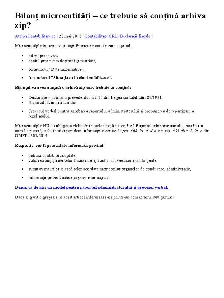 Bilanț Microentități Ce Trebuie Să Conțină Arhiva Zip