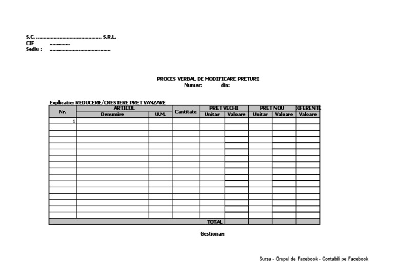Proces Verbal De Schimbare Pret Portal