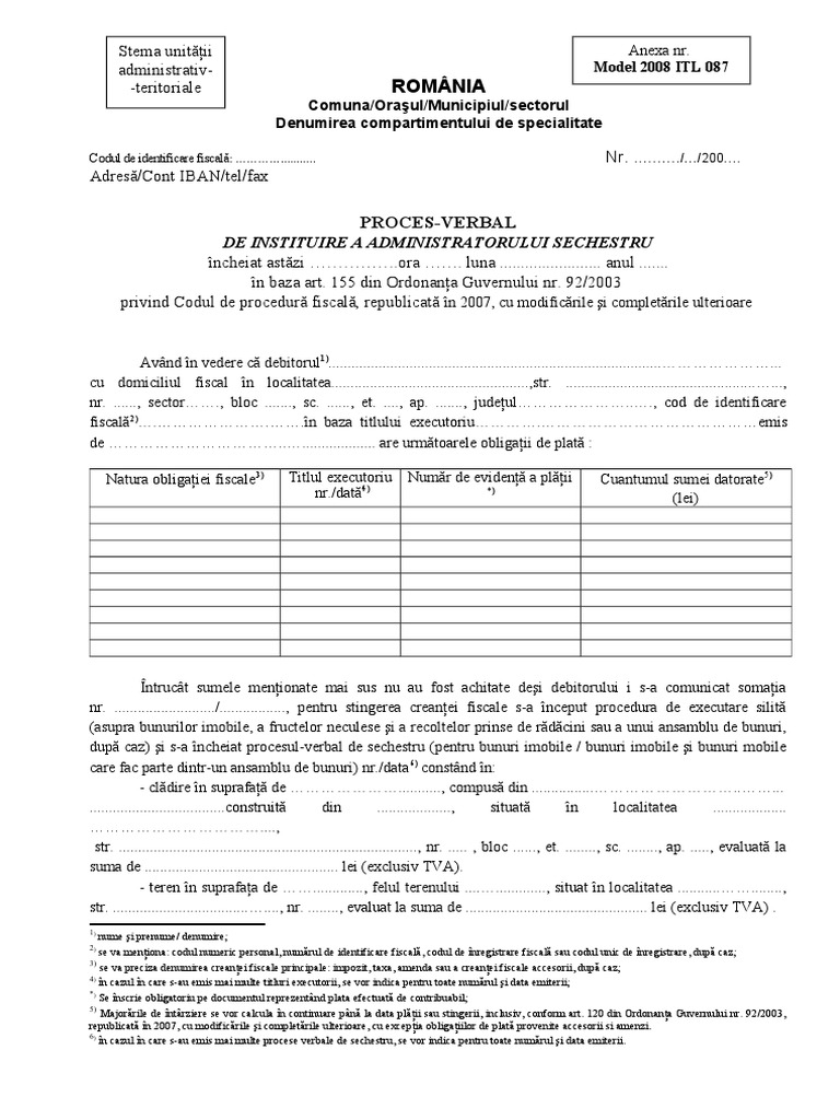 Itl 087 Proces Verbal De Instituire A Administratorului Sechestru