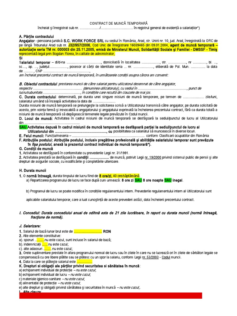 Model Contract Individual De Munca 2011