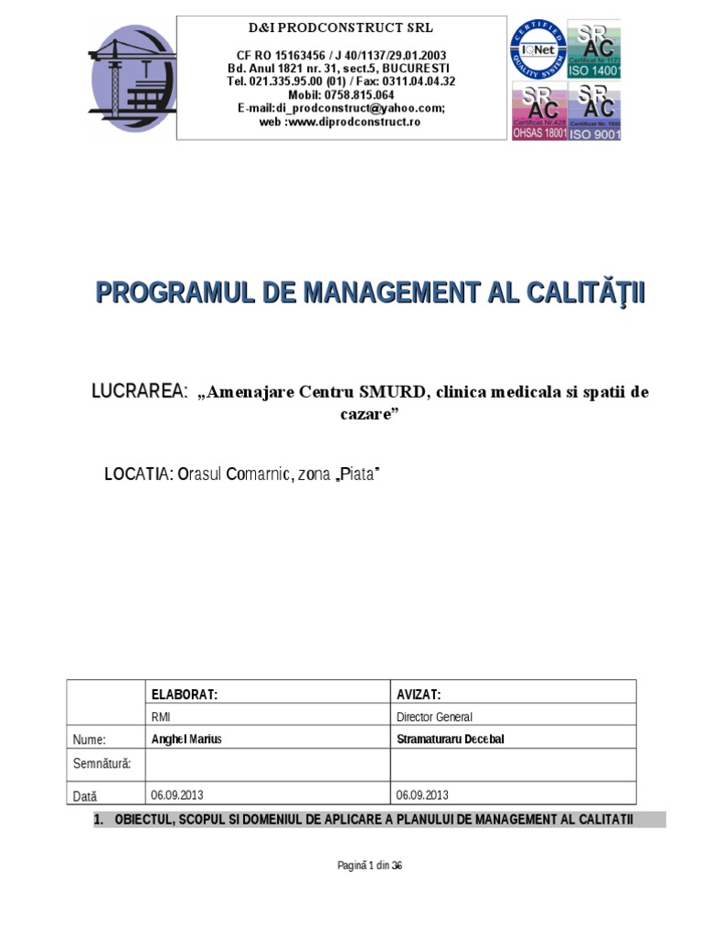 Programul De Management Al Calitatii Aplicat La Lucrare