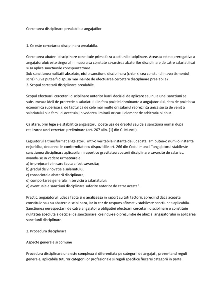 Cercetarea Disciplinara La A Angajatilor