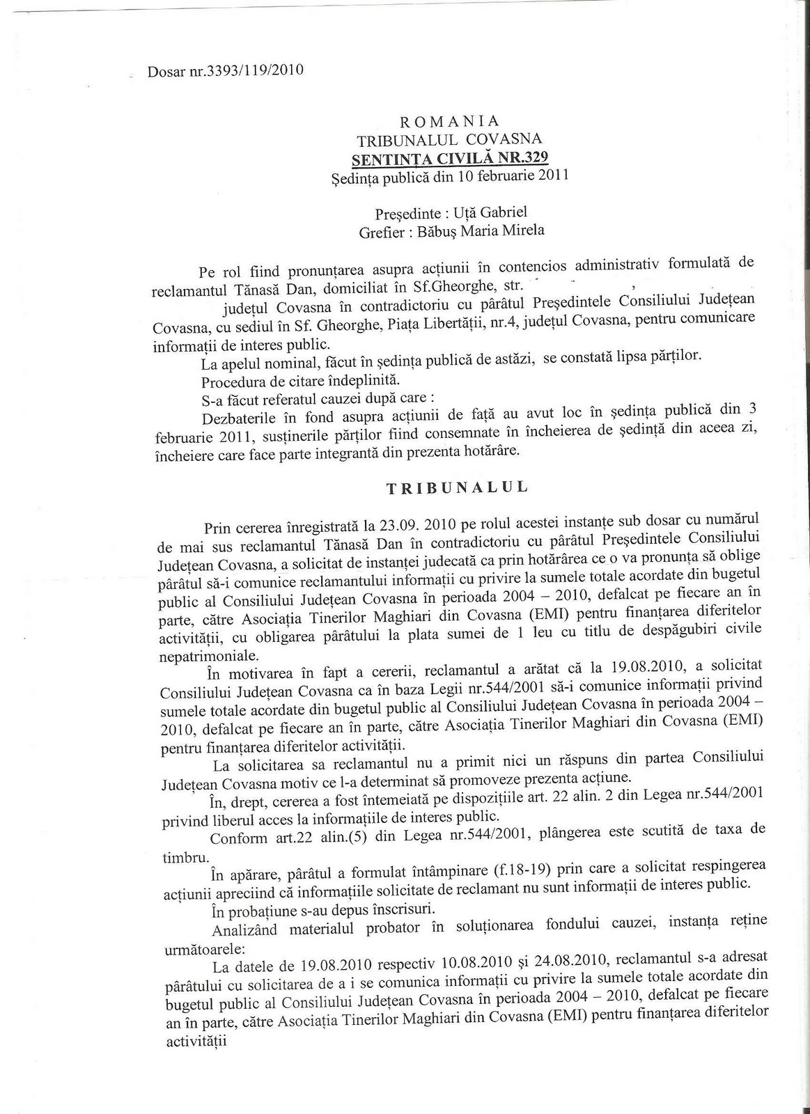 Sentinta Definitiva Si Irevocabila Presedintele Cj Covasna Udmr Istul Tamas Sandor Obligat De Curtea De Apel Brasov Sa Imi Comunice Cu Cat Ii Finanteaza Pe Extremistii Maghiari De La Emi Si Sa Imi